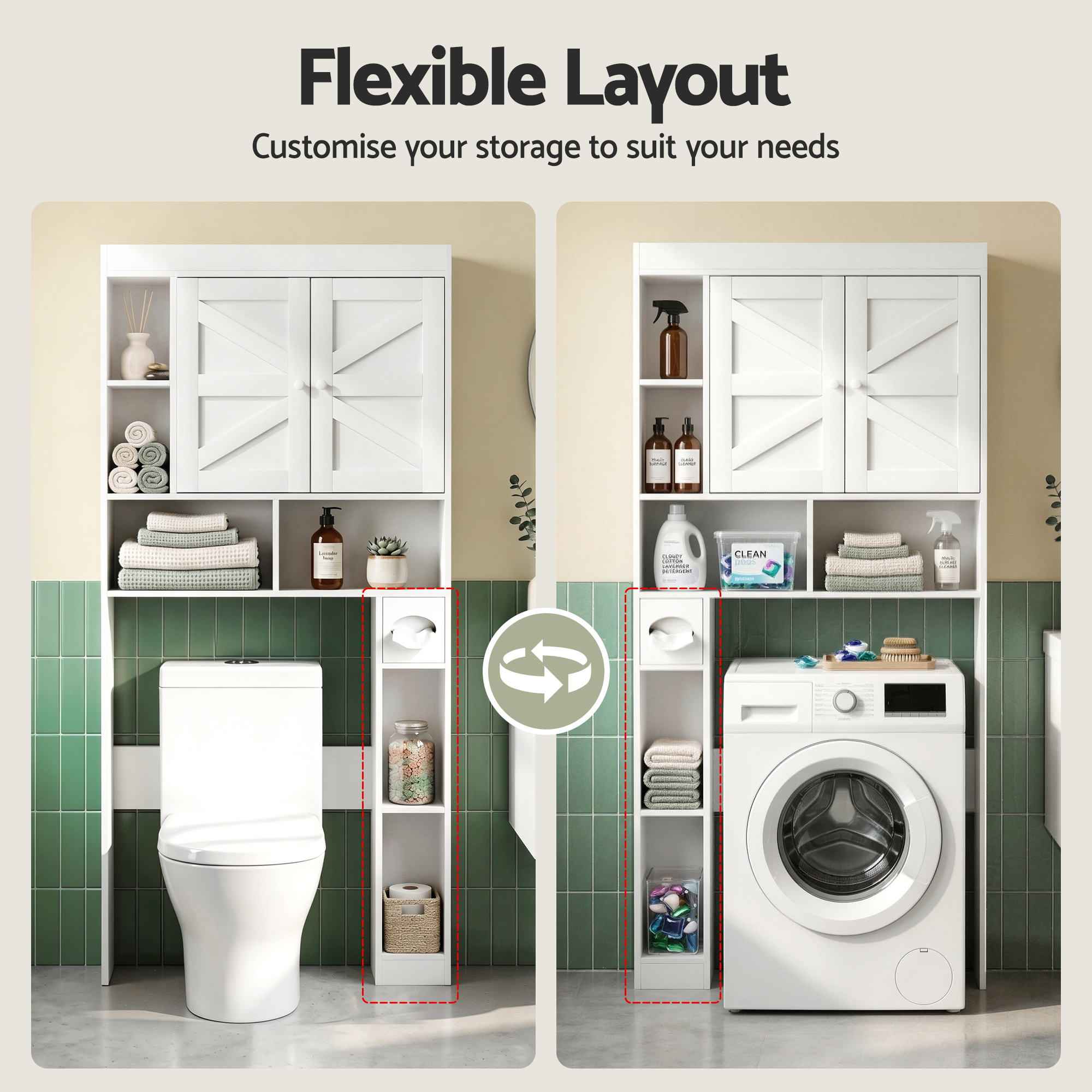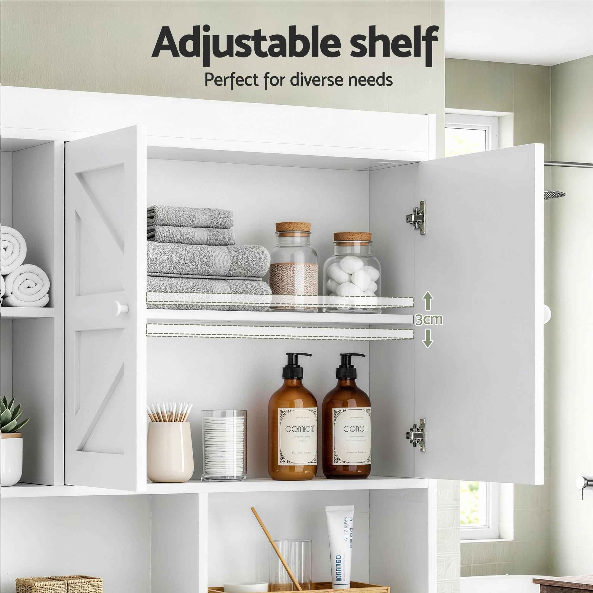 Make the most of unused bathroom space with the BarnLift Over-Toilet Storage Cabinet. Designed to sit neatly over your toilet, this smart organiser gives you extra storage without taking up valuable floor space. With a rustic barn door detail, six open compartments, and an adjustable shelf, it’s both practical and stylish for Australian bathrooms of any size.