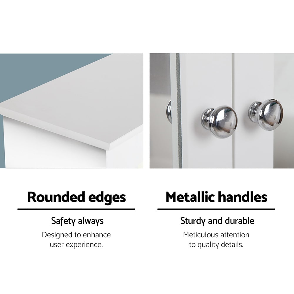 ✔ Stylish Mirror Door – Doubles as a functional mirror while hiding clutter
