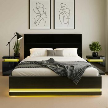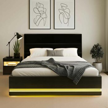 RGB LED Bed Frame with 1 Beside Table Set 16 Colour Mood Lighting Double