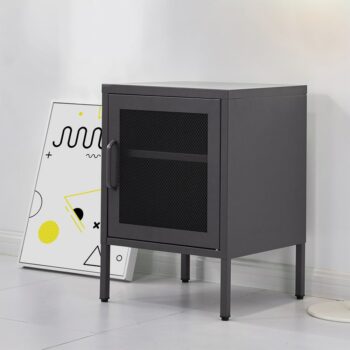 BORIS Bedside Table Sliding Doors Storage Nightstand Black
