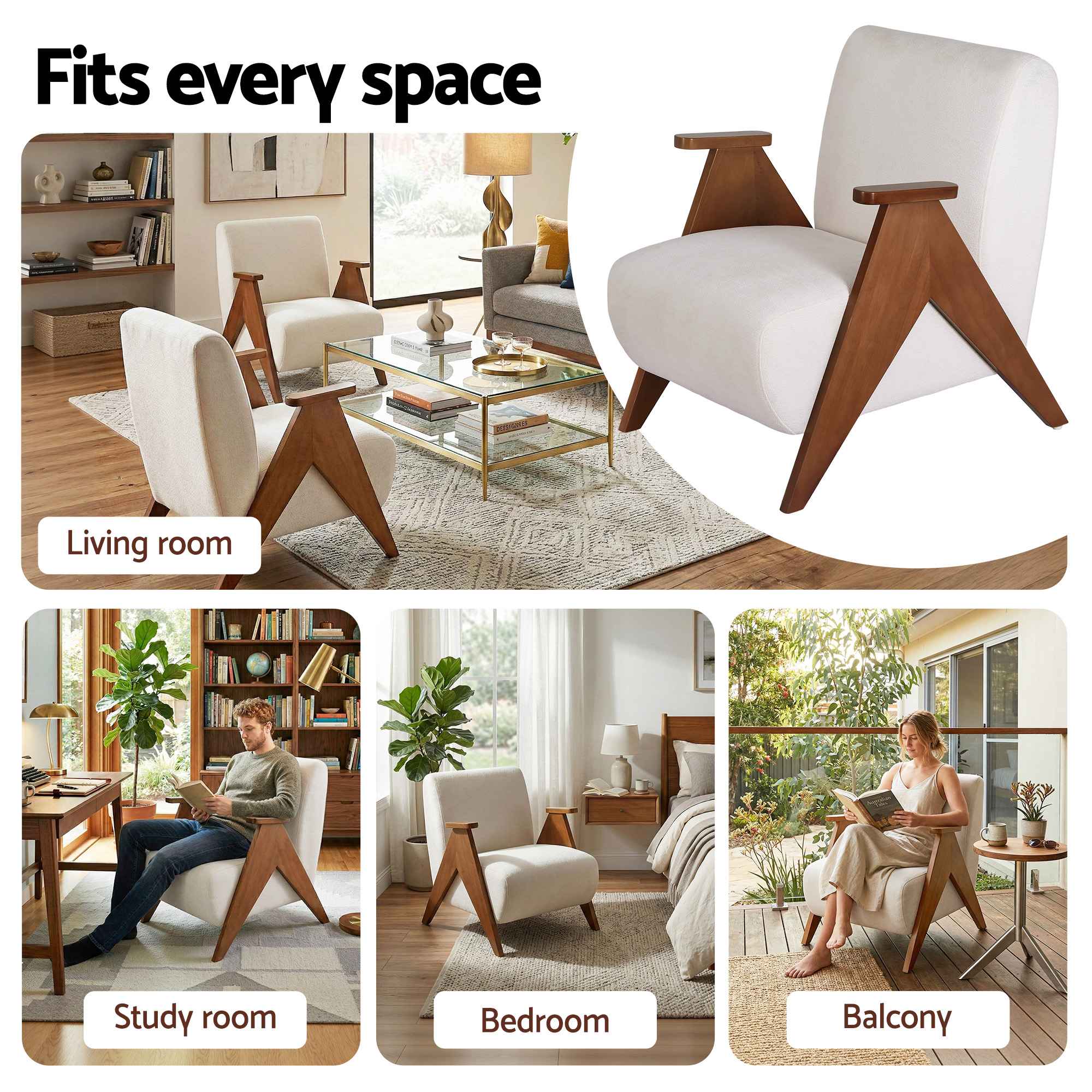 Its soft beige tone adds lightness to your space and pairs easily with timber furniture, neutral rugs, or statement cushions. From morning coffee to evening reading, this chair is designed to become a favourite seat in the home.