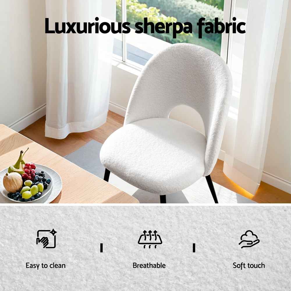 Upgrade your home with this contemporary white sherpa accent chair set – where comfort meets modern design. Perfect for entertaining or relaxing, these chairs are a stylish and practical addition to any space.