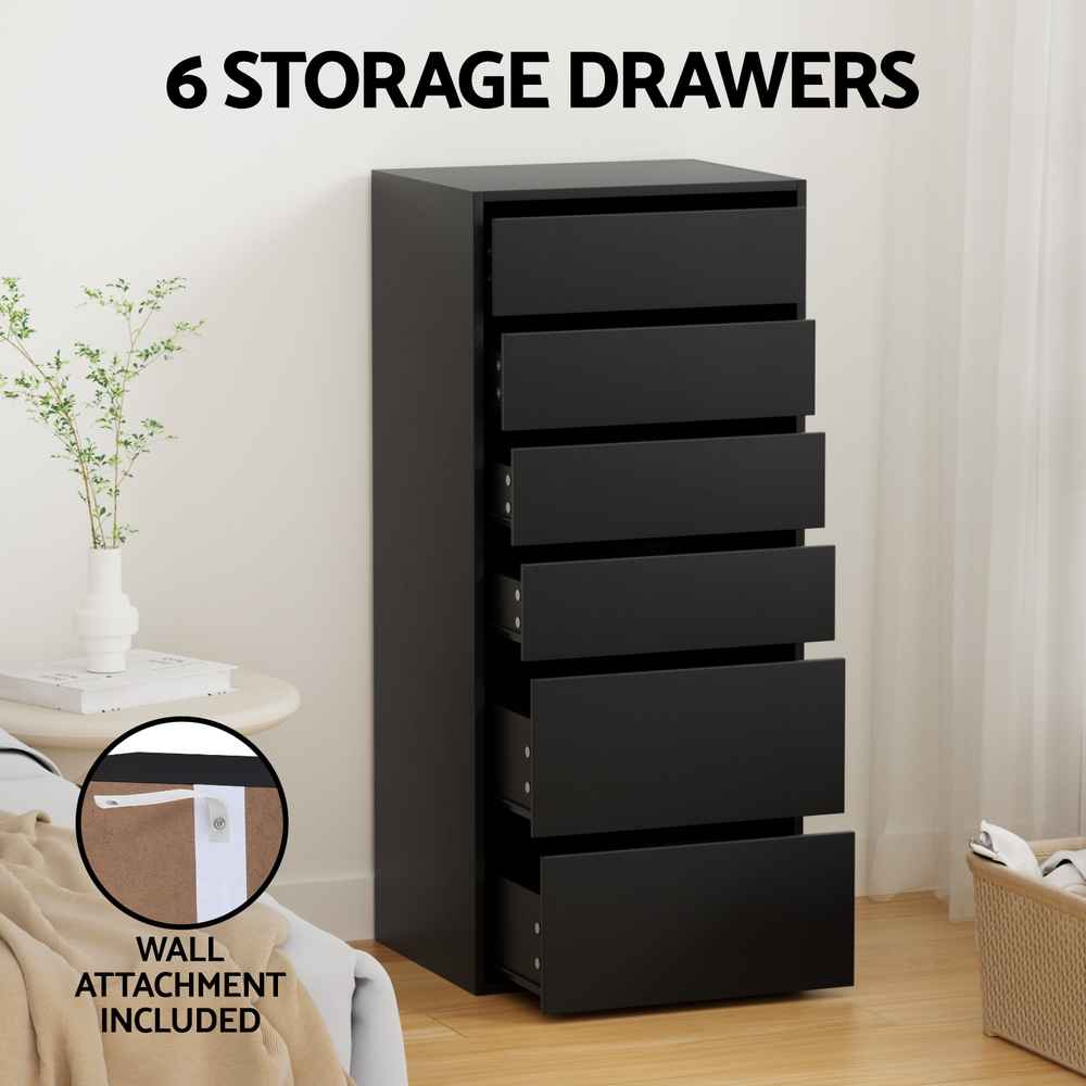 Tall Black Chest of Drawers – 6 Drawer Storage Cabinet