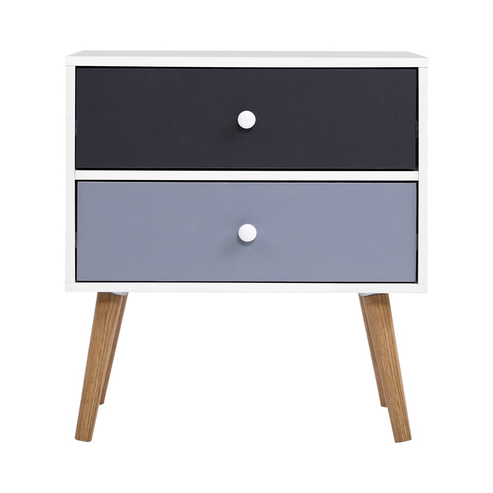 Crafted from high-quality materials, this bedside table features a smooth paper veneer finish and a striking black-and-white contrast. Its splayed wooden legs, coated for durability, give it a distinctive mid-century look that stands the test of time.