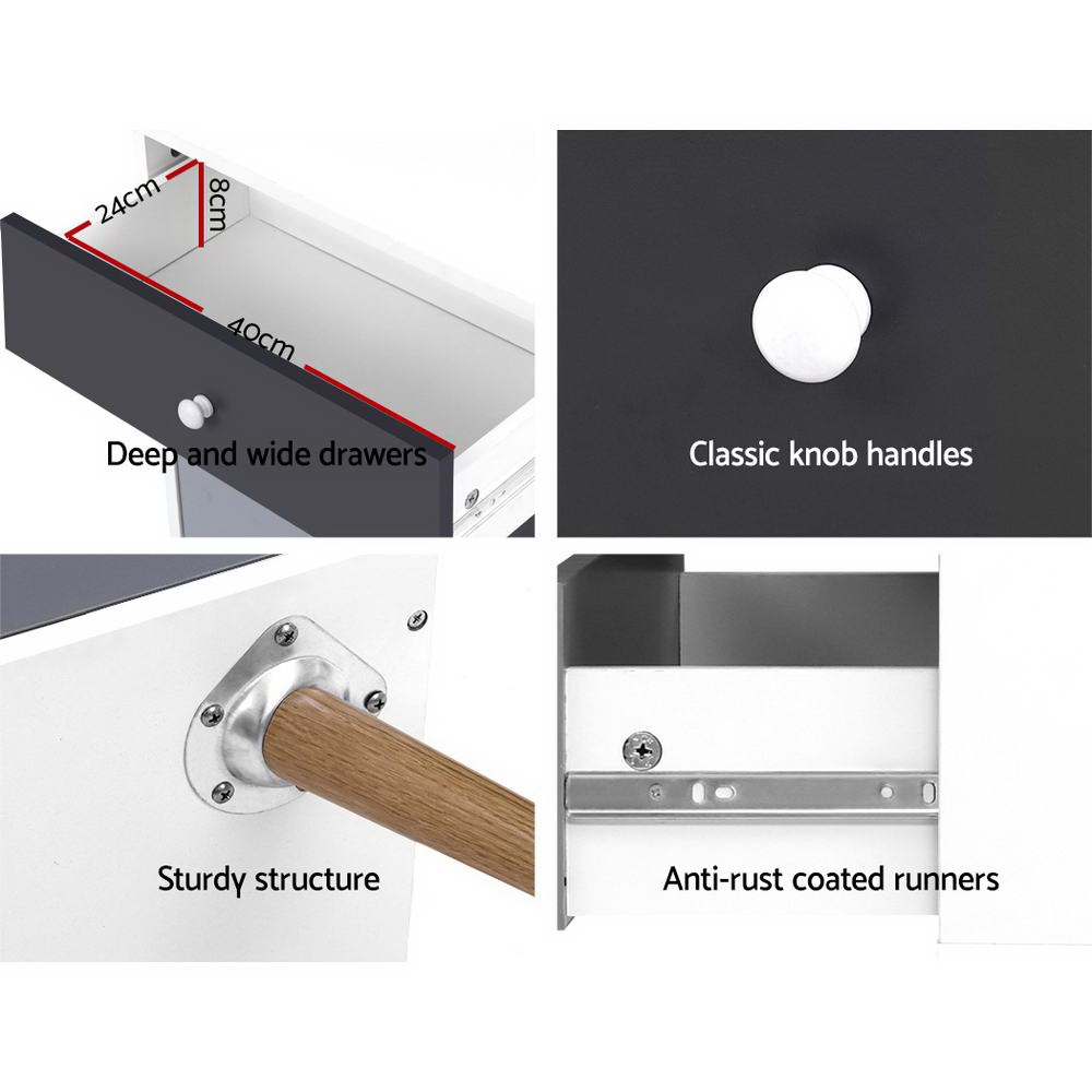 A design that is Scandinavian-inspired and while still reminiscent of decades-old influences, our BONDS 5-drawer Tallboy offers full functionality with subtle style. Made from quality particle board and a smooth paper veneer finish, the two-tone tallboy adds chic appeal to your décor and is the perfect choice to grace a dressing room, bedroom, living room or any other space in your home or establishment. The five generous-sized drawers provide ample space for all your clothing, fashion accessories, personal essentials and more. The splayed legs offer a unique, reliable stance, while the classic knob handles and smooth anti-rust metal drawer slides offer smooth, hassle-free use every time. Not sure this piece will suit your home? Take advantage of the latest 3D augmented reality technology to see it first hand – just scan the QR code on our website and decide for yourself!