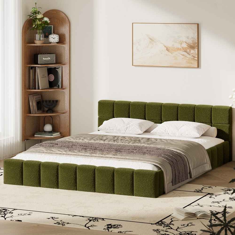 BRED Green Boucle Bed Frame Tufted Headboard Queen
