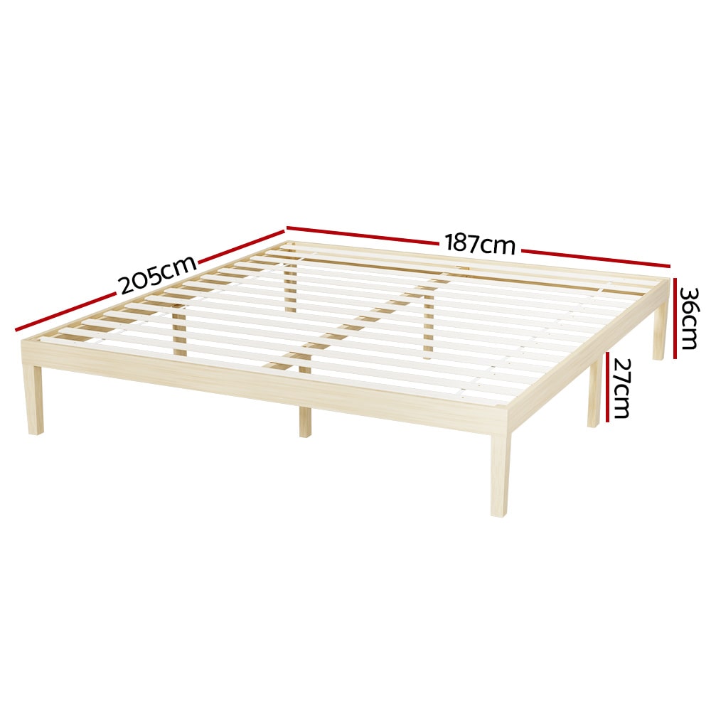 BRUNO Bed Frame Pine Timber Mattress Platform - King