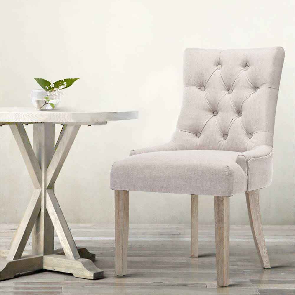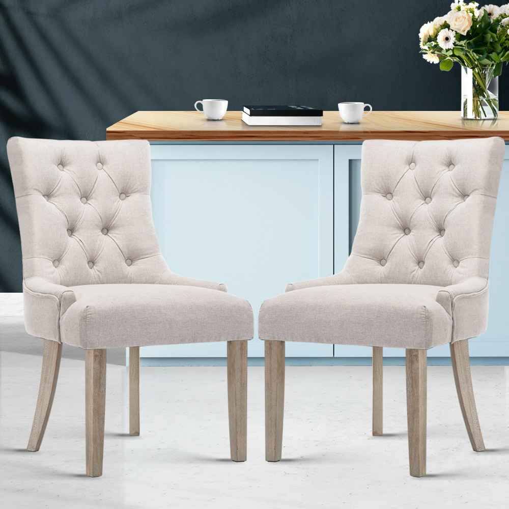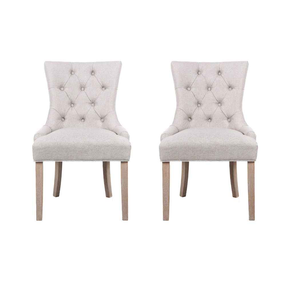 Cayes Linen Fabric & Rubberwood Legs Dining Chairs (Set of 2)