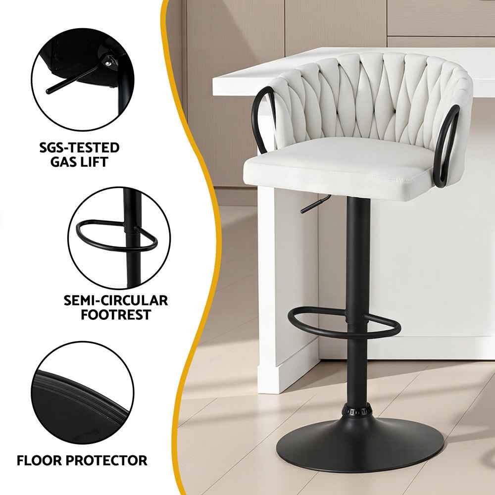 Experience the ultimate in seating comfort with plush velvet upholstery and a woven ergonomic design that cradles your body perfectly. The smooth height adjustment (82–102cm) allows you to tailor the stool to your ideal seating level, whether for casual dining or entertaining guests.