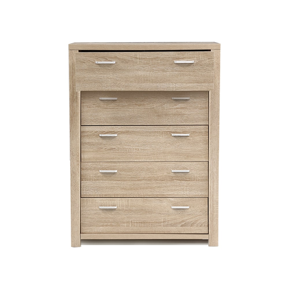 If you’re looking for a practical yet elegant storage solution, this 5-drawer tallboy is the perfect choice. Featuring a contemporary design with a smooth natural wood grain finish, it effortlessly complements any home décor while offering ample storage space for your essentials.