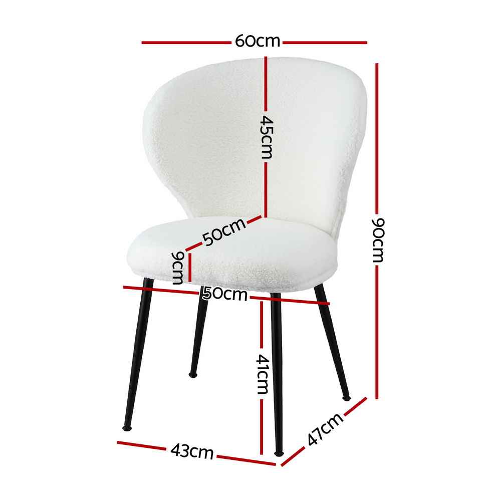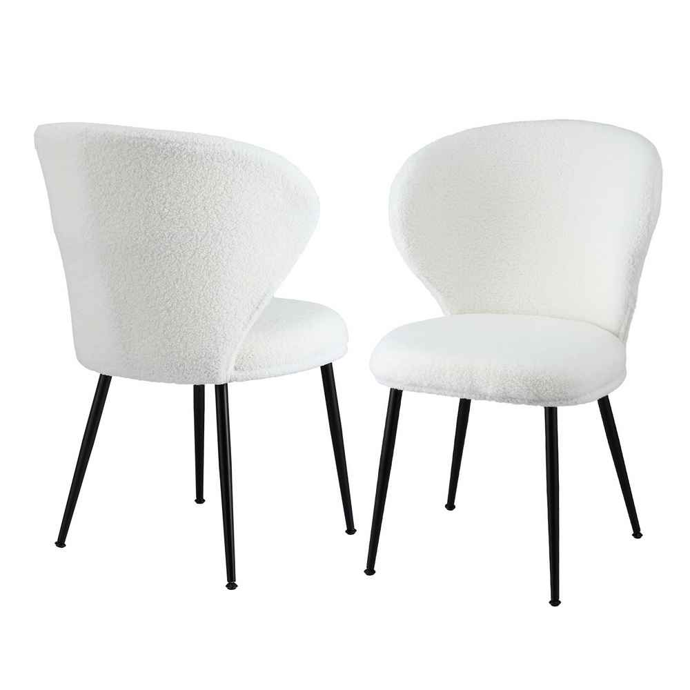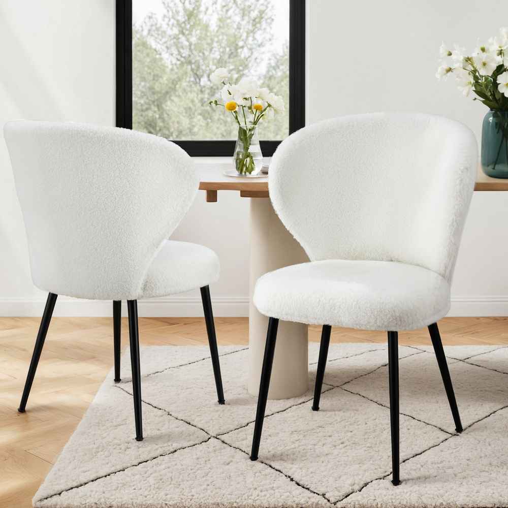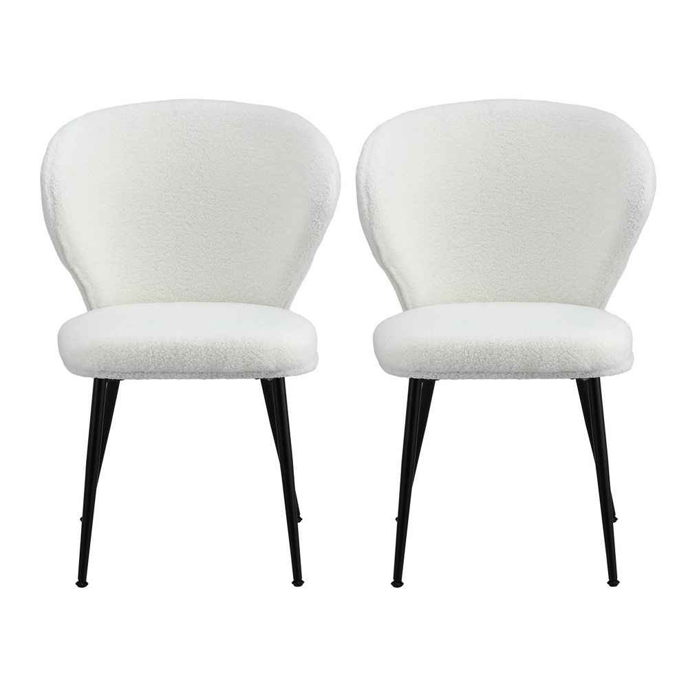 Chippendale Dining Chairs Sherpa Boucle Fabric – White (Set of 2)