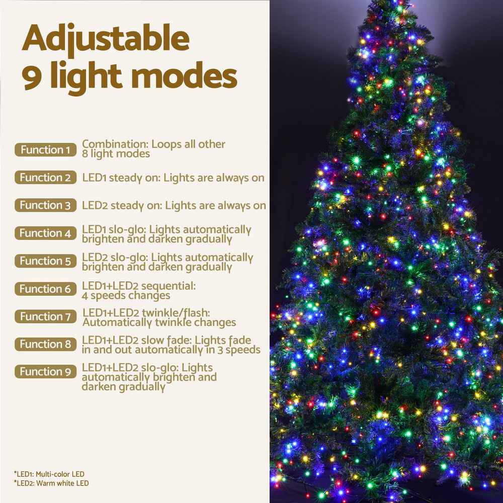 Enjoy the glow of 1134 multicoloured LED bulbs in red, yellow, blue and green tones. With 8 lighting modes, you can switch from a soft twinkle to a festive flash at the touch of a button. The built-in lights save you the hassle of stringing your own, ensuring a perfectly illuminated display every time.
