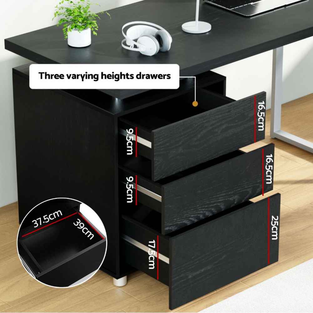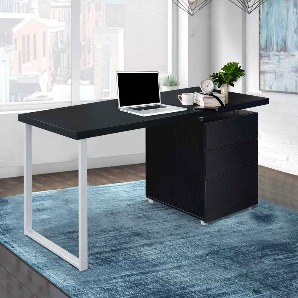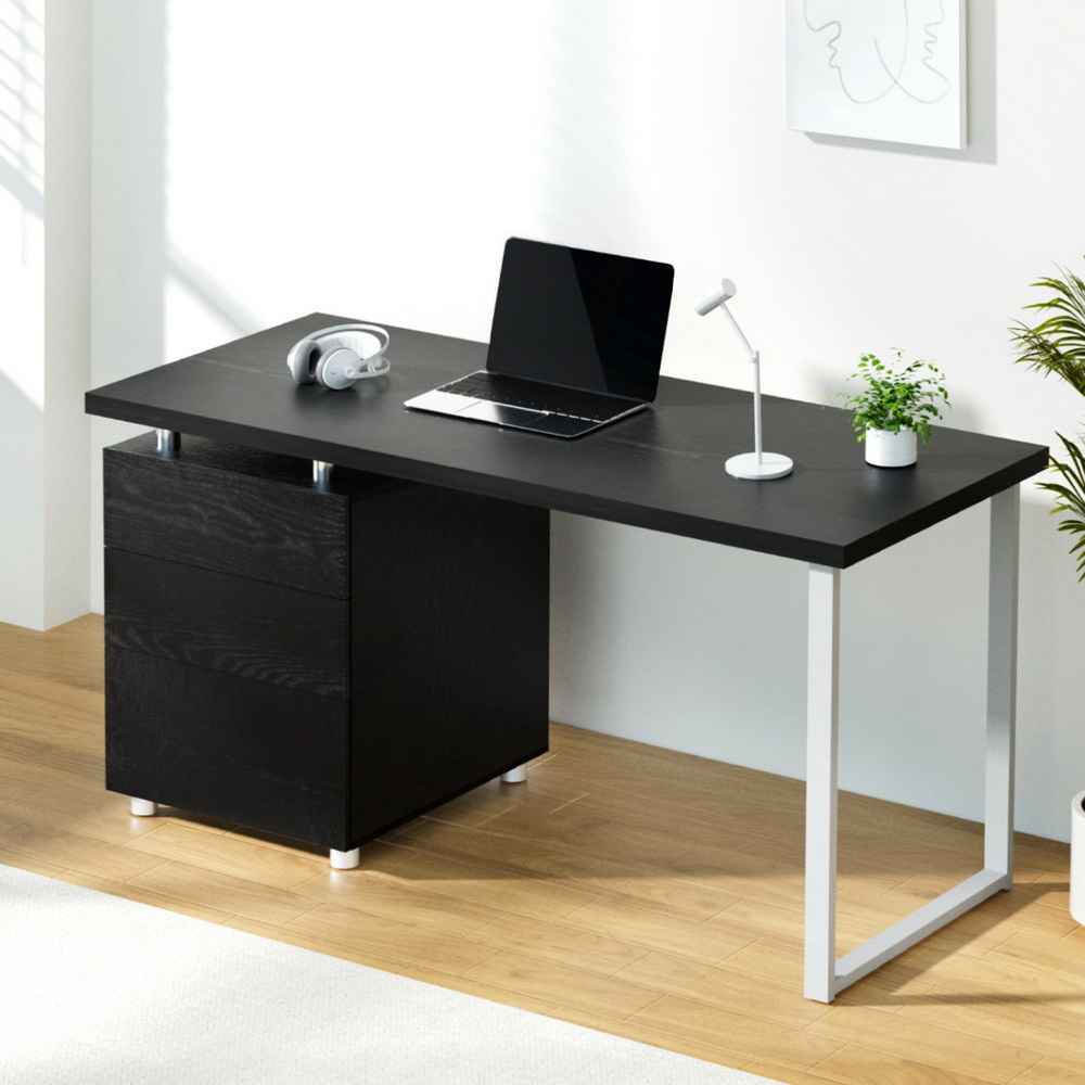 Simple yet practical, this modern computer desk is designed to boost productivity while enhancing the look of your workspace. With its sleek black finish and clean lines, it complements any home office or professional setting. The desk offers a spacious tabletop for your computer, documents, and essentials, while the three-drawer cabinet keeps your work area organised and clutter-free.