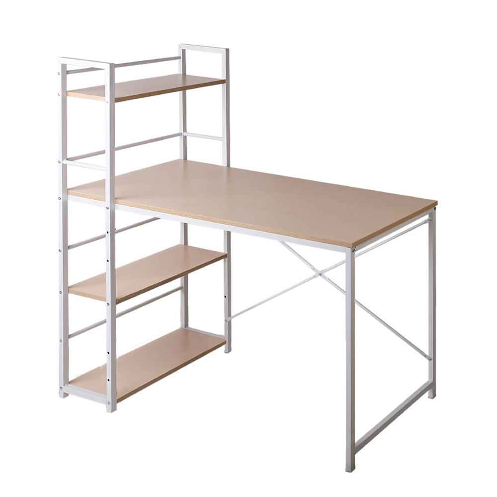 On one side, four built-in open shelves with backstops provide easy access to your books, files, and décor items — keeping your workspace organised and clutter-free. The wide desk surface offers plenty of room for your laptop, monitor, and daily work essentials, making it ideal for studying, working from home or creative projects.
