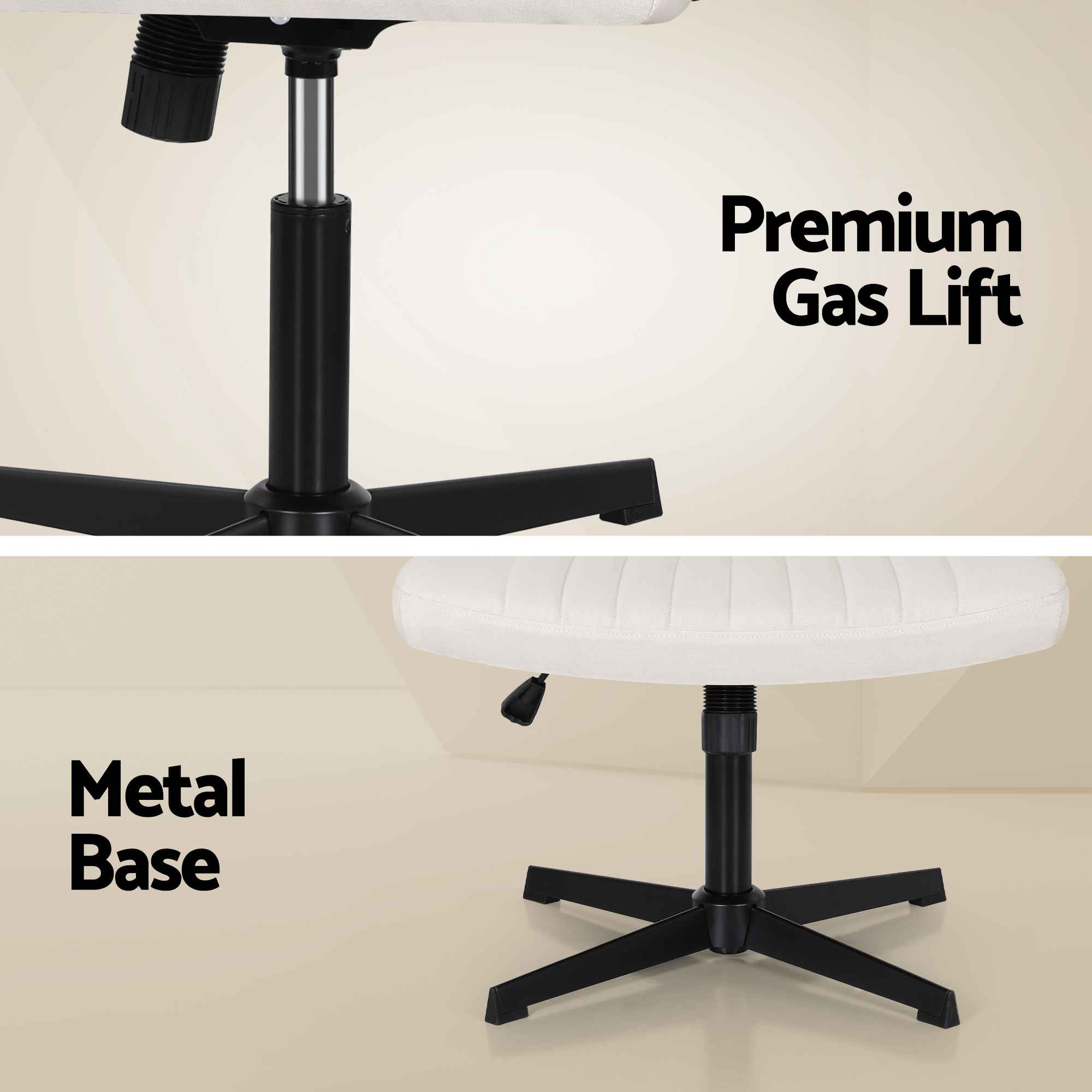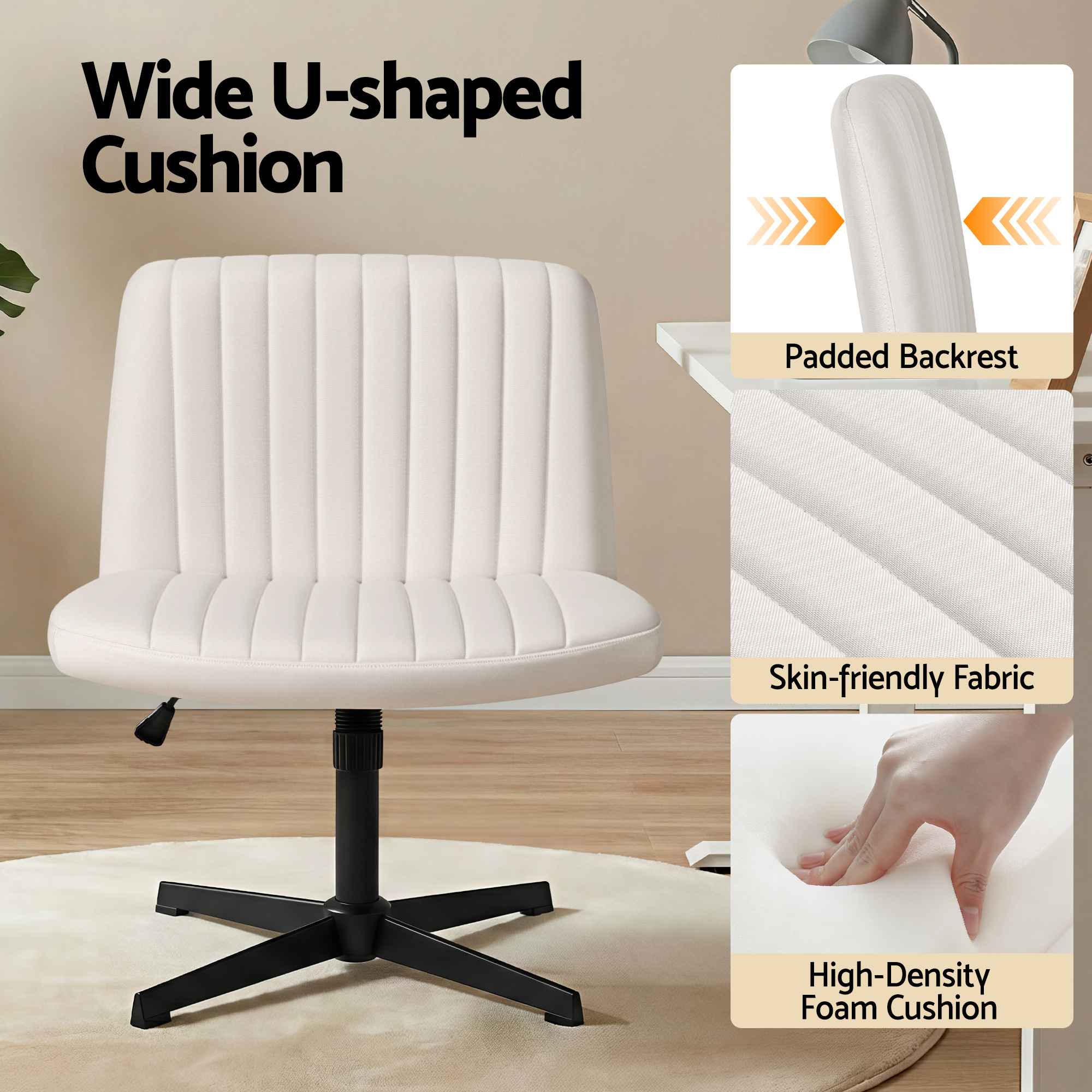 Enhance your workspace or living area with this modern criss cross office chair, thoughtfully designed to deliver comfort, flexibility and everyday practicality. The wide backrest and U-shaped seat are padded with high-density foam, allowing you to sit cross-legged or maintain proper posture during long hours of work, study or relaxation. Its armless design maximises space and freedom of movement, making it ideal for home offices, bedrooms, vanities and multi-purpose rooms.