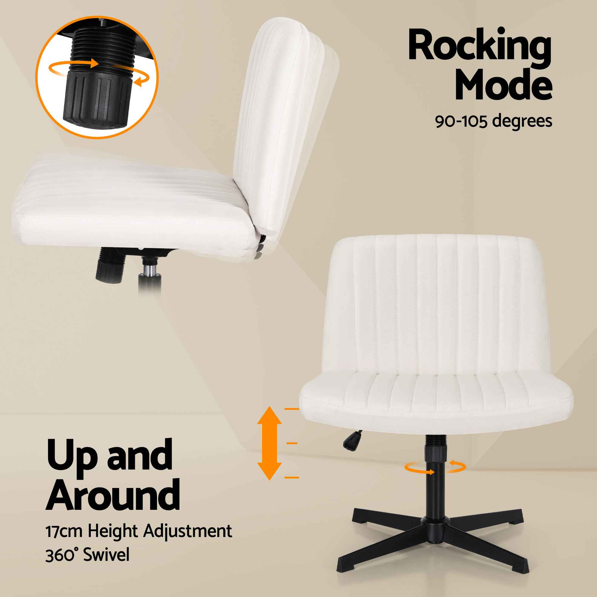 • 17 cm adjustable seat height to suit various desk and vanity heights
