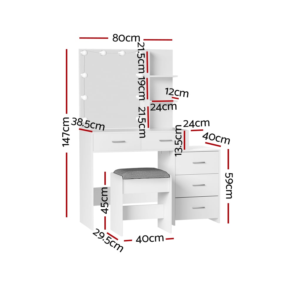Dale Dressing Table Set Stool 10 LED Bulbs White