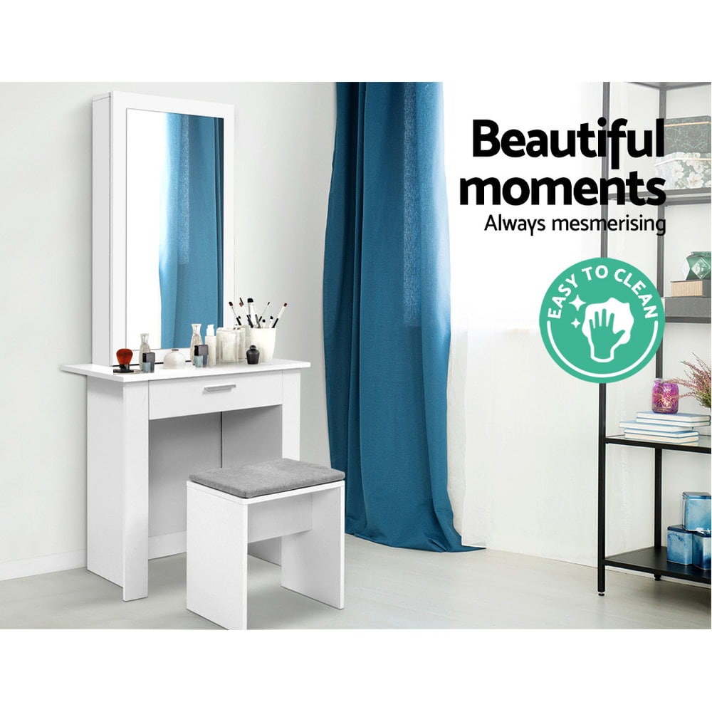 Demi Dressing Table and Stool Set with Sliding Mirror – White