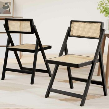Rattan-Style Foldable Dining Chairs Black (Set of 2)