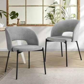 WELS Dining Chairs Linen Grey and Black (Set of 2)