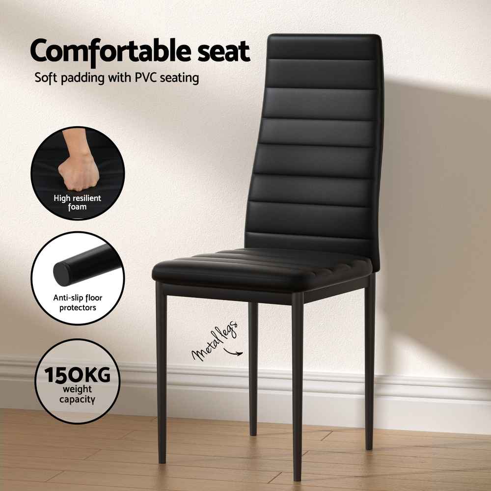 With sturdy powder-coated metal legs and reinforced steel fixings, the dining table and chairs are built for everyday use while offering contemporary elegance. Whether you’re enjoying family dinners or hosting casual get-togethers, this set adds sophistication and functionality to your dining room.