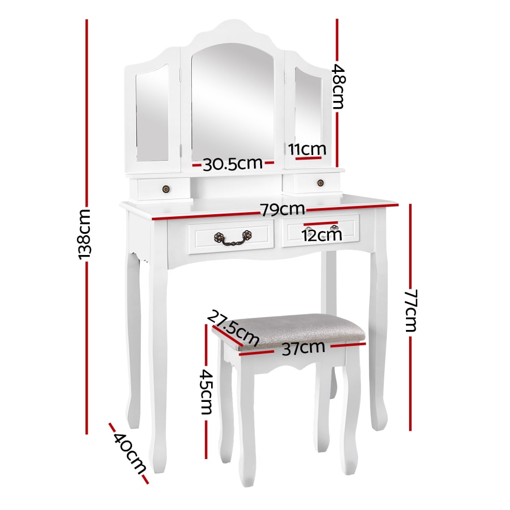 ✔ Dressing Table: 79cm (W) × 40cm (D) × 138cm (H)