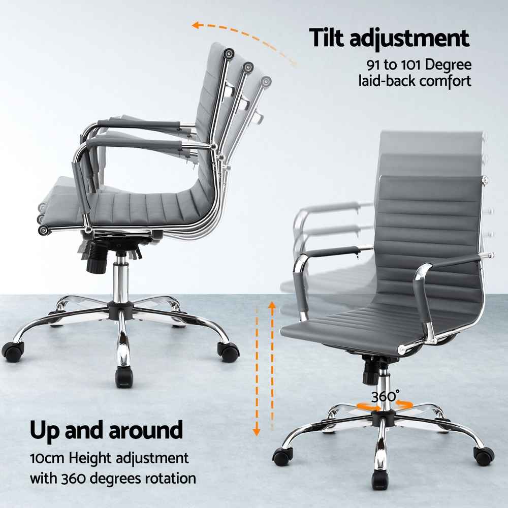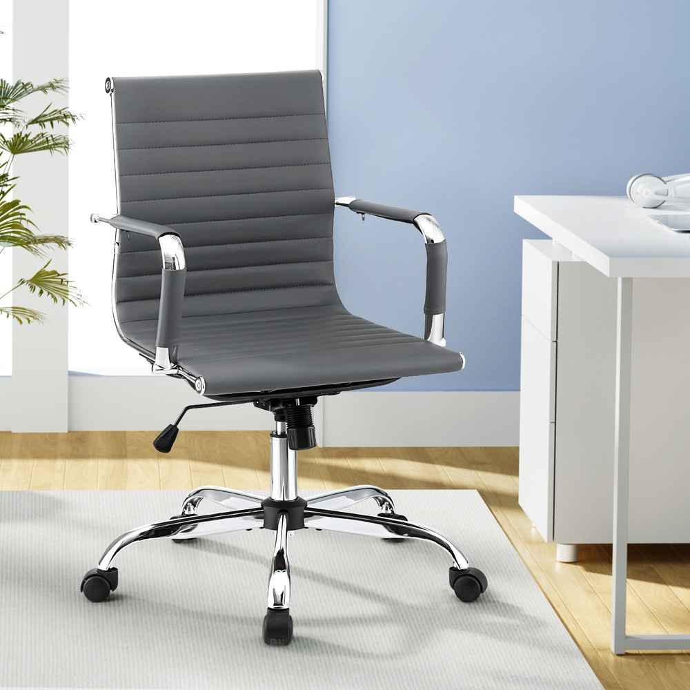 Eames Conference Office Chair PU Leather Mid Back – Grey