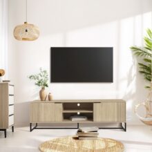 Watch television or play video games in style with our Elo LED Entertainment Unit. The ideal statement piece for media enthusiasts, you’ll wonder how you entertained without it. The unit comes with built-in RGB LED lighting that can be customised with 16 different colours and 4 different flashing modes to suit your preferences. Constructed from quality particleboard with a melamine finish, the unit is built for long-lasting use. The high-gloss front is perfectly smooth, making it a beautiful aesthetic piece that is also easy to clean. The two drawers have a handle-less design to maintain the sleek appearance and they provide ample storage for all your entertainment paraphernalia. Five open shelves let you put your favourite pieces on display, illuminated by your favourite LED light spectrum. The Elo LED Entertainment Unit will be the perfect addition to any modern living room. The future is now – get yours today.