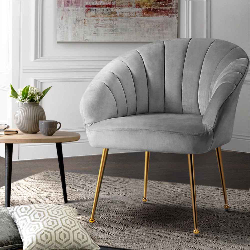 Eloise Grey Velvet Accent Armchair with Gold Legs