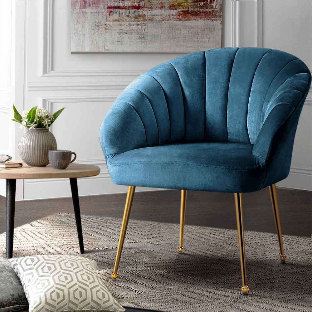 Eloise Navy Velvet Accent Armchair with Gold Legs