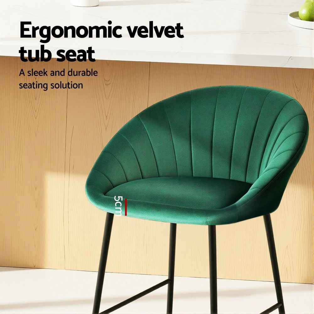 Bring a touch of sophistication to your dining, kitchen, or bar area with this set of 2 velvet bar stools. Designed with an ergonomic tub-style seat, these stools provide superior comfort while adding a modern designer look to your space.