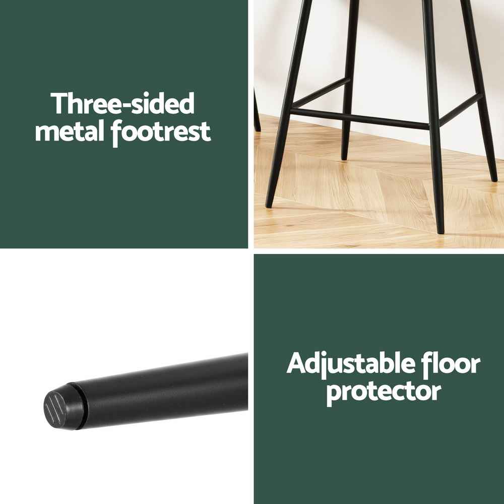 Crafted with plush velvet upholstery and a sturdy metal frame, each stool supports up to 120kg, ensuring lasting durability. The three-sided footrest offers extra relaxation, while the anti-slip floor protectors safeguard your flooring from scratches. With quick and simple assembly, these stools are both practical and stylish.
