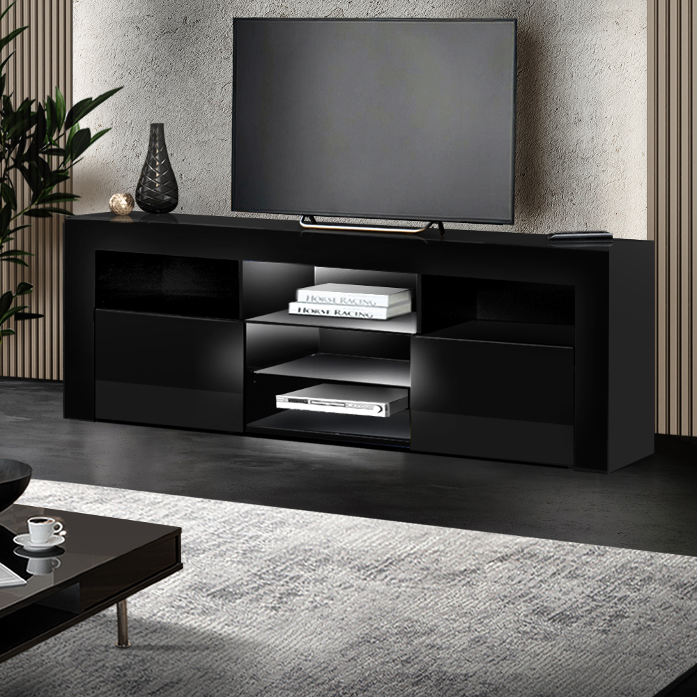 Now you can even watch television or play video games in style with our LED Entertainment Unit. The unit comes with built-in LED lighting that can be customised into 16 different colours and 4 different effects to suit your preference. Not only does the entertainment unit create a beautiful ambience, it is certain to be a showstopper that will wow all your houseguests. The unit will be the perfect addition for your modern living room with its contemporary and linear design. The two cabinets have push-to-open mechanisms to maintain the sleek appearance and along with the five open shelves, they provide ample storage for all your entertainment paraphernalia.