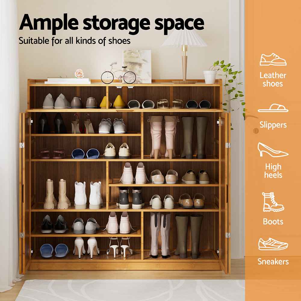 Keep your entryway neat and clutter-free with this stylish bamboo shoe cabinet. Designed for both functionality and modern living, it offers 7 sturdy shelves to neatly store up to 30 pairs of shoes (size dependent).