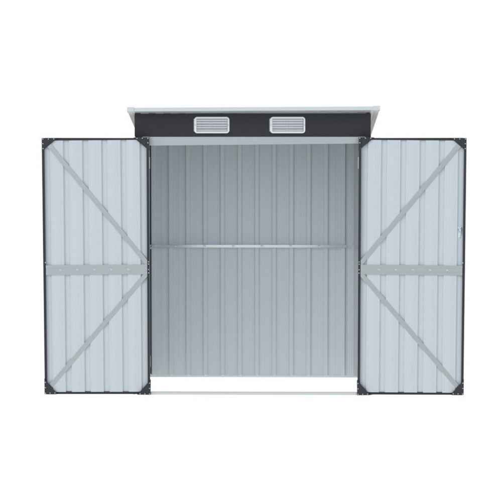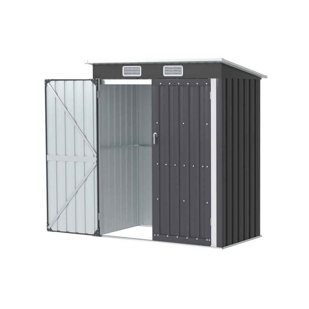 Constructed with galvanised steel and polypropylene, this shed is designed to handle changing weather while keeping your belongings secure. The sloped roof prevents water build-up, and the lockable double doors offer convenience and peace of mind.