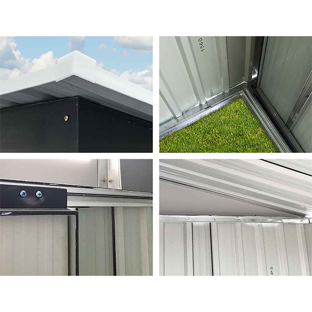 The sloped roof is designed to shed rainwater efficiently, preventing pooling and helping extend the lifespan of the shed. This simple but effective design keeps maintenance requirements low and reduces the risk of rust or damage.