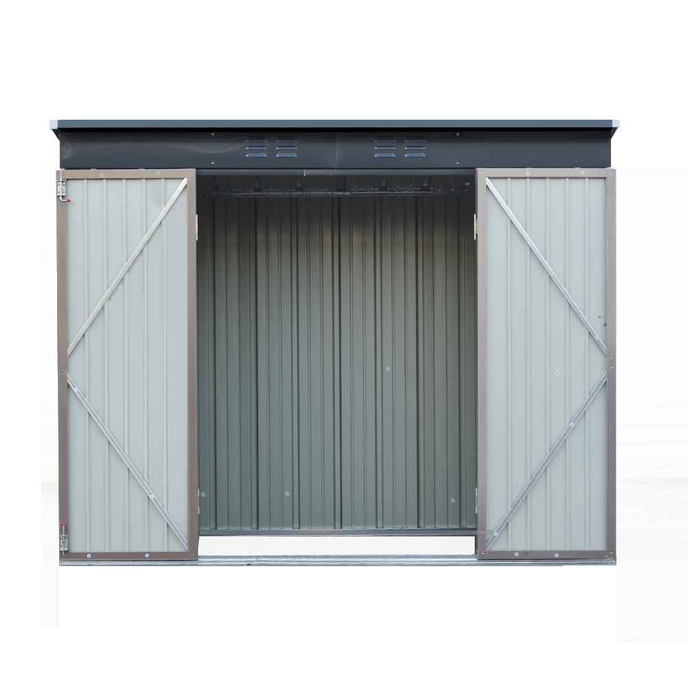 Constructed with quality materials, the shed is engineered to withstand the elements without warping or rusting. The sloped roof design helps water drain away efficiently, preventing pooling and keeping your items dry.