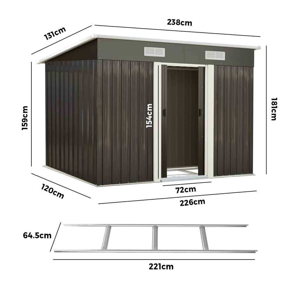 This outdoor shed is ideal for storing gardening equipment, landscaping tools, DIY gear, storage boxes and more. Thanks to its sliding door system, it saves space in tighter outdoor areas. The included base helps maximise stability and layout efficiency, ensuring a durable, reliable setup. With ventilation, lockable access and weather-ready steel, your stored items stay protected and organised.
