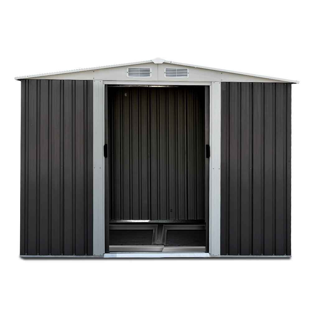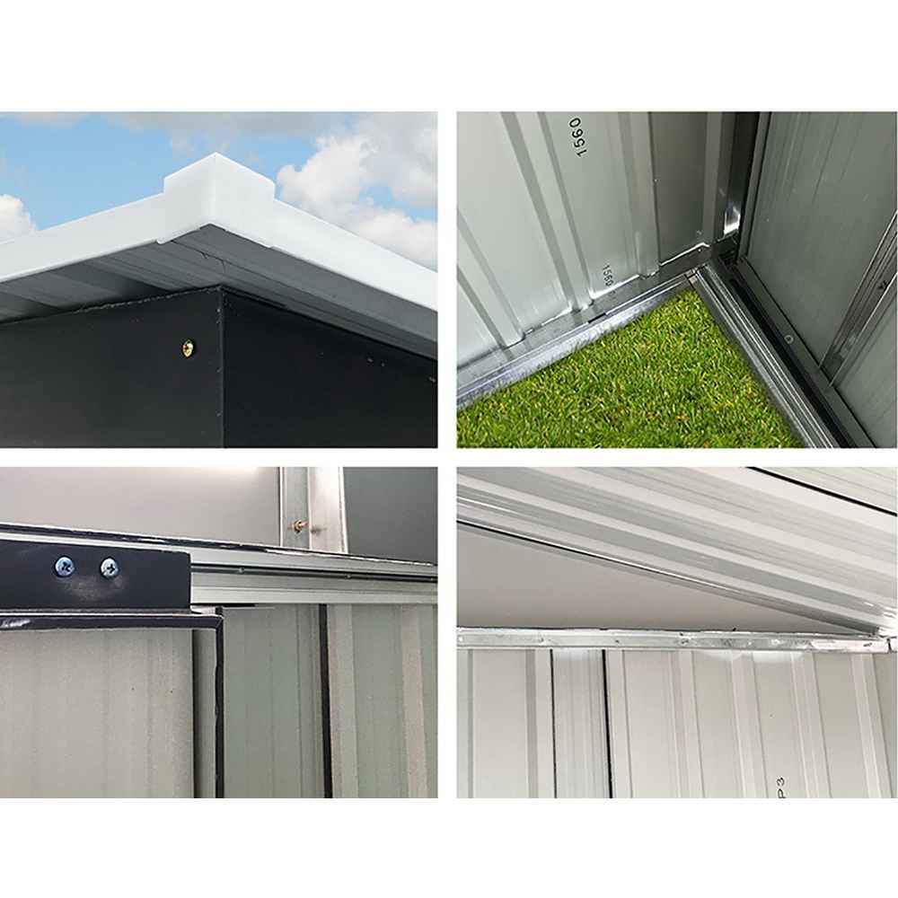 Inside, the shed provides plenty of room for tools and equipment. Four built-in air vents maintain optimal airflow to prevent stuffiness, while double sliding doors allow easy access and unobstructed movement. The sloped roof efficiently drains rainwater, preventing pooling and protecting your belongings.