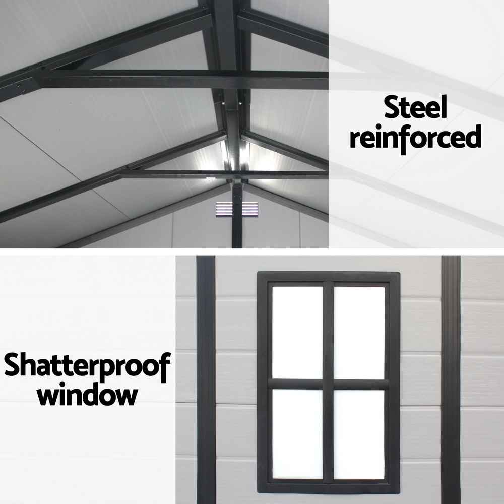 Say goodbye to clutter and exposed equipment. This premium garden storage shed delivers a secure, weather-resistant and spacious solution for organising your outdoor space. Crafted from durable polypropylene (PP) with steel reinforcement, it stands strong against the elements while remaining rust-proof and maintenance-free.