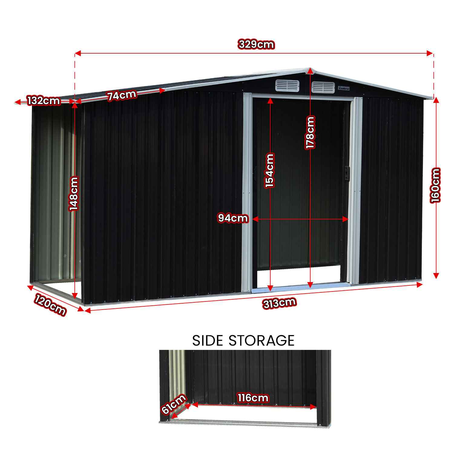 With generous internal space, this steel garden shed is perfect for storing gardening tools, DIY equipment, outdoor furniture and materials. The wide double sliding doors make it easy to access larger items without hassle.