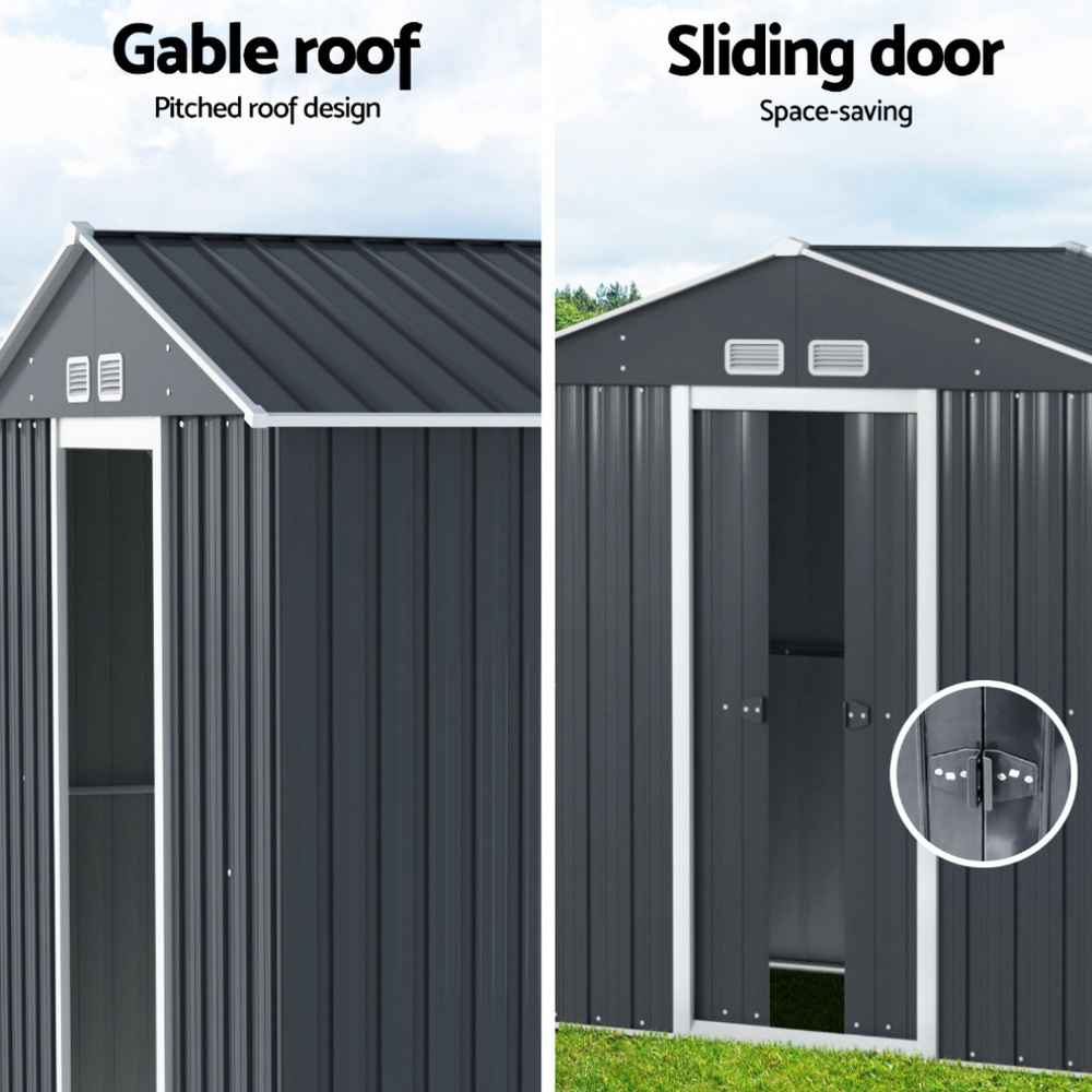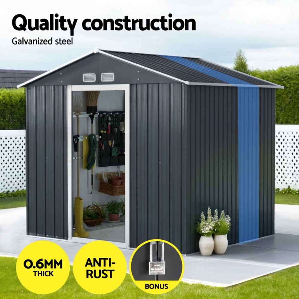 Built from galvanised steel, colour-coated panels and a sturdy zinc steel frame, this shed is made to resist corrosion and everyday wear. The sloped roof helps water run off easily, adding long-term protection during heavy rain.