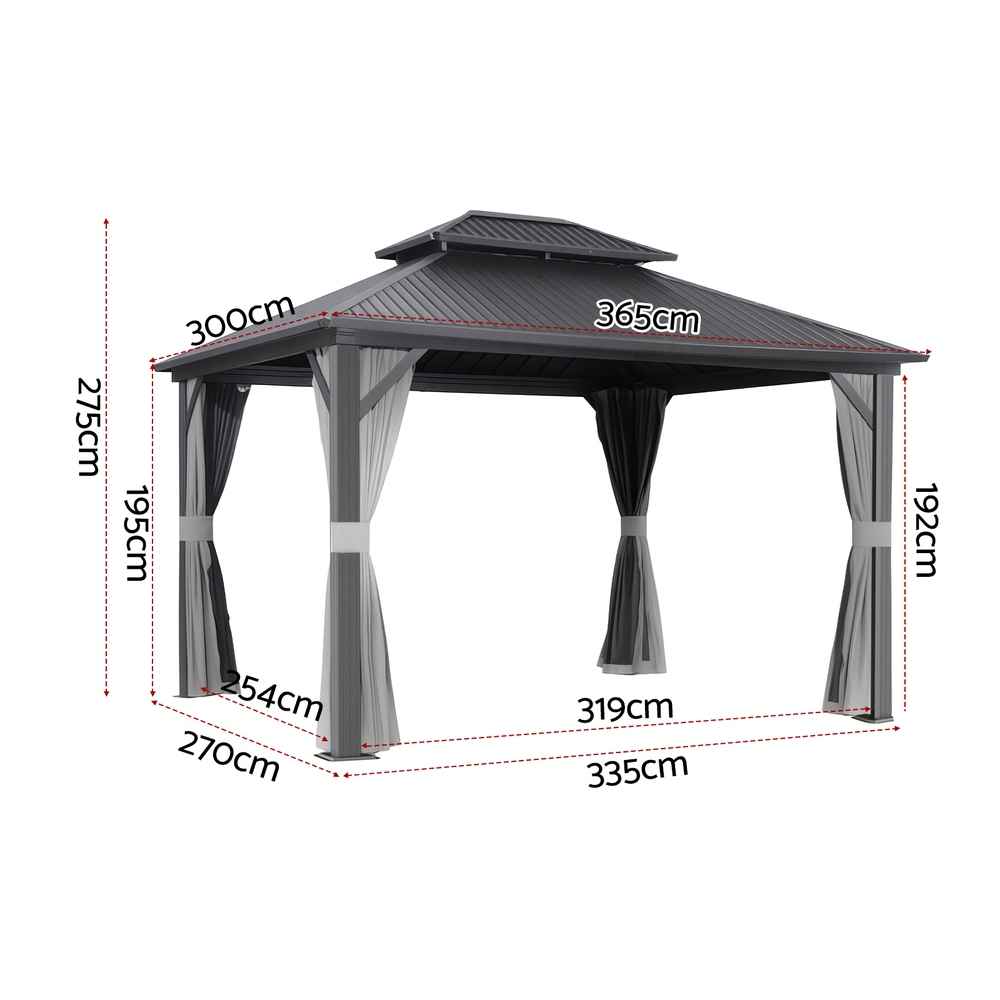Upgrade your outdoor living with a stylish and durable gazebo designed for year-round comfort. Built tough with a galvanised steel double roof for extra strength and a powder-coated aluminium frame, this gazebo provides long-lasting stability while maintaining a sleek, modern look.