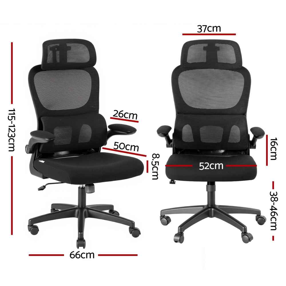 The breathable mesh back promotes airflow to keep you cool, while the thick padded seat cushion provides extra comfort. With a strong chrome steel base, smooth 360° rotation, and flip-up armrests, this chair is built to suit both home and professional office environments.