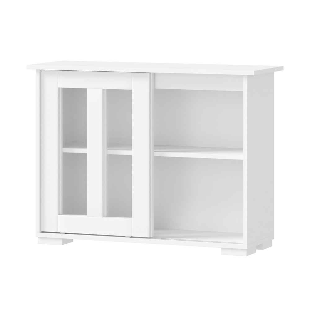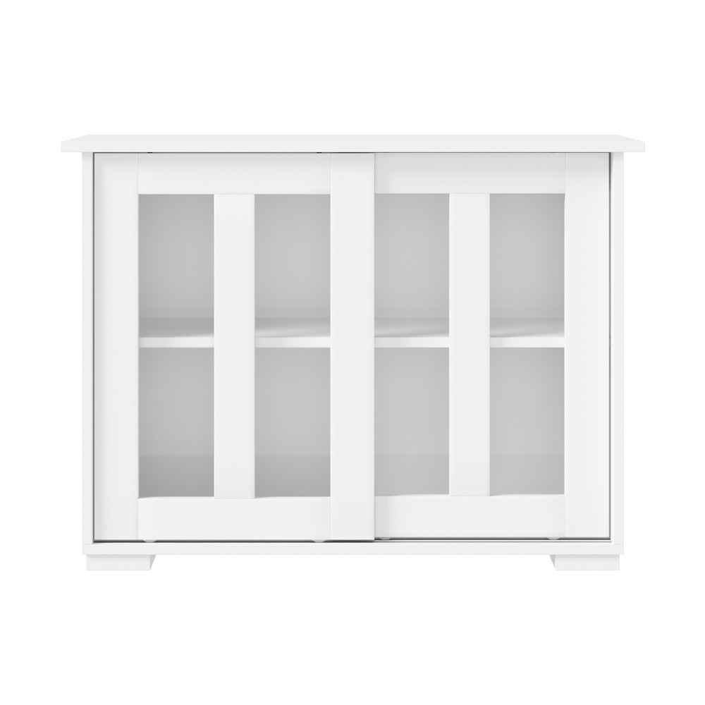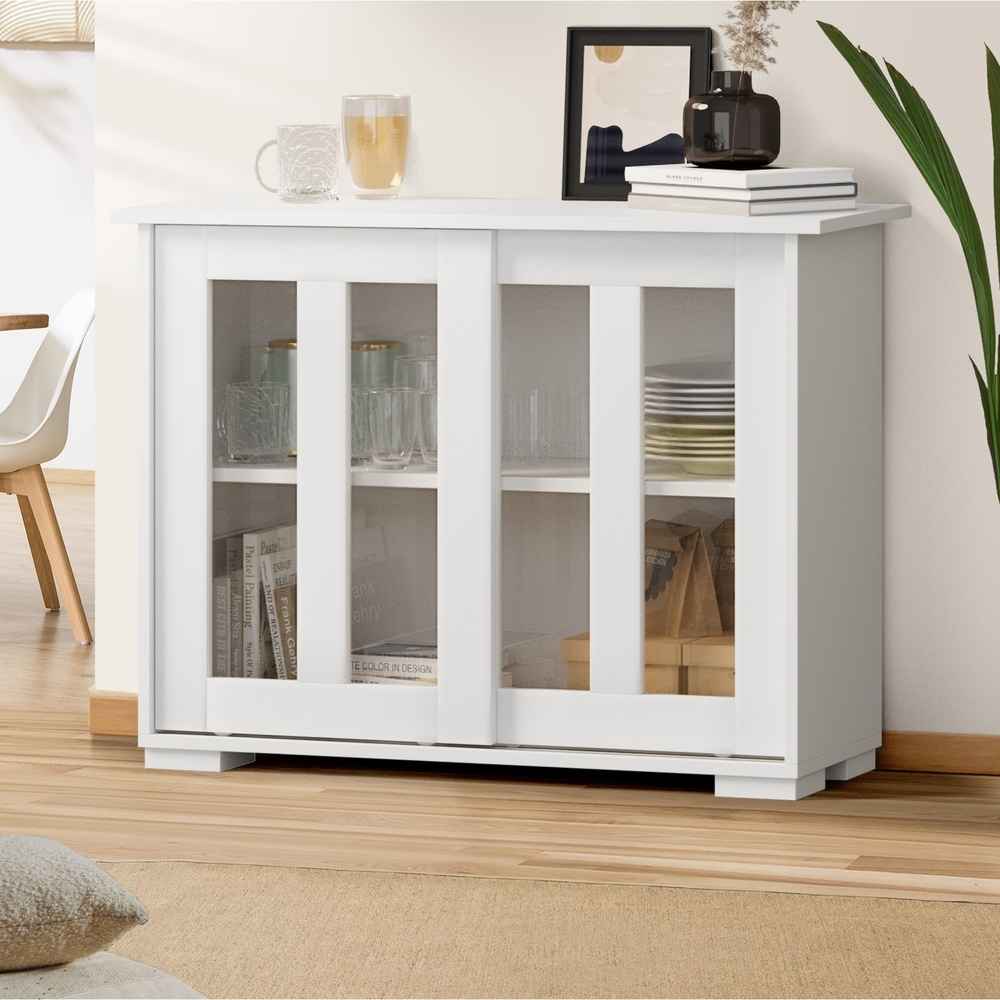 GlassGlide Sideboard – White Storage Cabinet with Sliding Glass Doors