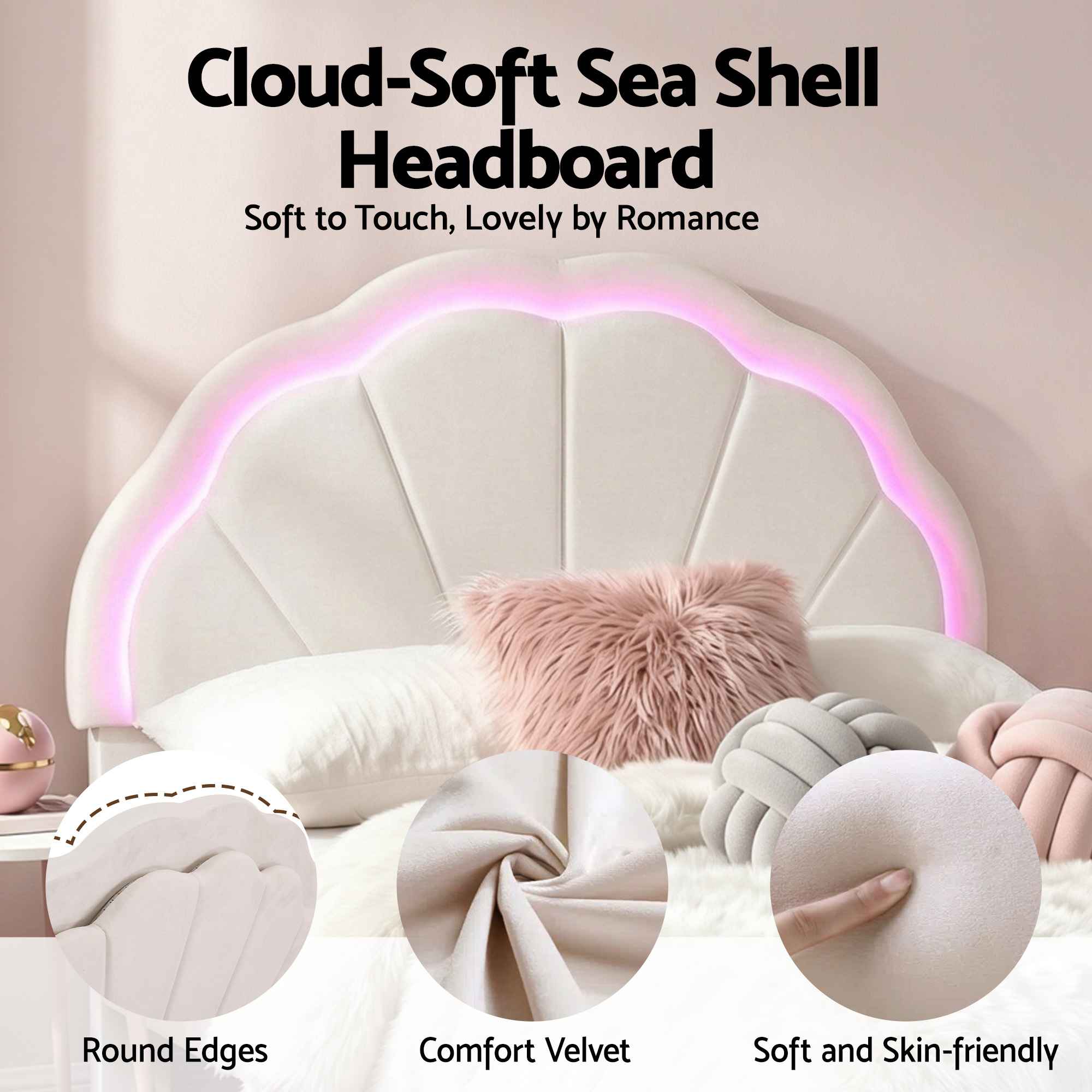 Built-in LED mood lighting on headboard