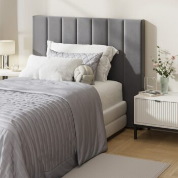 EDDI Bed Head Headboard Velvet Grey – Double Queen King
