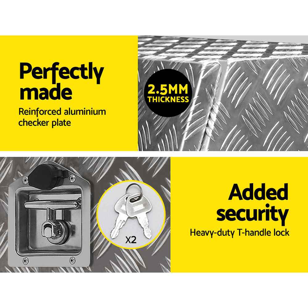 Upgrade your storage with this heavy-duty aluminium tool box and enjoy peace of mind knowing your tools are safe, organised and always within reach.