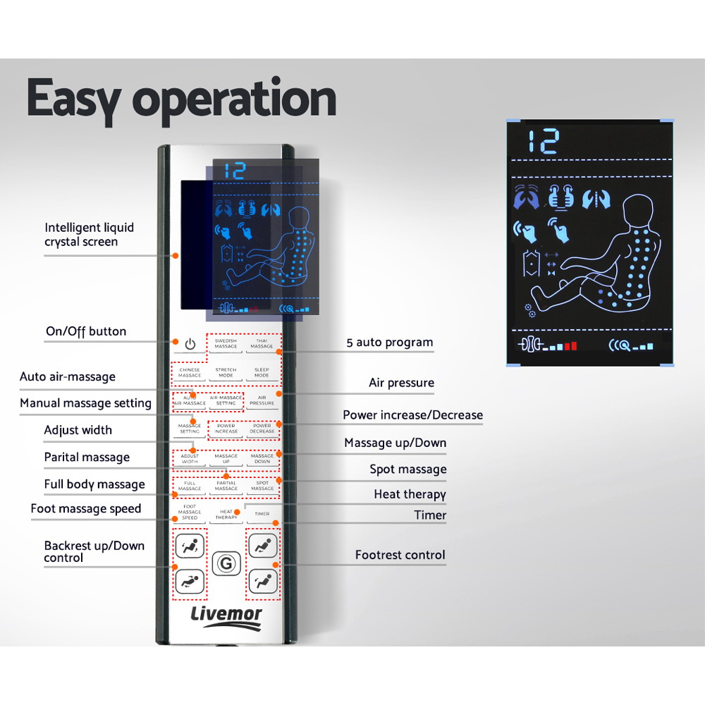 Using the latest smart massage technology, the Mirna Electric Massage Chair is designed to deliver an out-of-this-world massage experience. A deeply relaxing experience that rivals the professionals, all from the comfort of home. The extensive SL track provides a full body massage that follows the curve of your spine and extends below the thighs, leaving every muscle relaxed. The massage chair also has an automatic body scanning function that maps out the key areas of the neck and back for a consistent massage. Using 5 signature full-body automatic programs, 4 targeted modes, 3 levels of strength and speed adjustments, you can tailor the massage to your exact specifications. Not only that, but you can enjoy ultimate relaxation with a heated massage function, zero gravity position, and built-in Bluetooth speakers to listen to your favourite audiobooks and music. Why pay for the professionals when you can have the luxury of a premium massage in your living room? Get your Mirna Electric Massage Chair today.