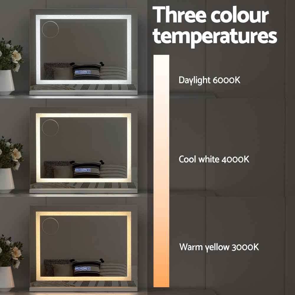 Prefer a space-saving setup? The detachable base allows you to wall-mount your mirror effortlessly. With touch-sensitive controls, easily adjust brightness and switch between warm, natural, and cool light tones for the ideal lighting in any setting.